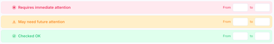 - Status: The user needs to select the status of that item (Checked OK, May need future attention, or Needs immediate attention).