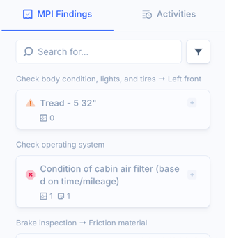 Si une Inspection Multi-Point (MPI) a été effectuée pour cette estimation, vous pouvez rechercher les éléments d’inspection appropriés sous MPI Findings et les ajouter à l’estimation en cliquant dessus.