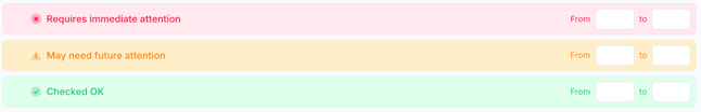 - Measurement (Mesure) : L’utilisateur doit entrer une valeur pour cet élément (pression des pneus en PSI, épaisseur des plaquettes de frein en millimètres, etc.). Si vous choisissez cette option, entrez le seuil correspondant pour chaque état.