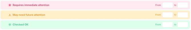 - Status: The user needs to select the status of that item (Checked OK, May need future attention, or Needs immediate attention).